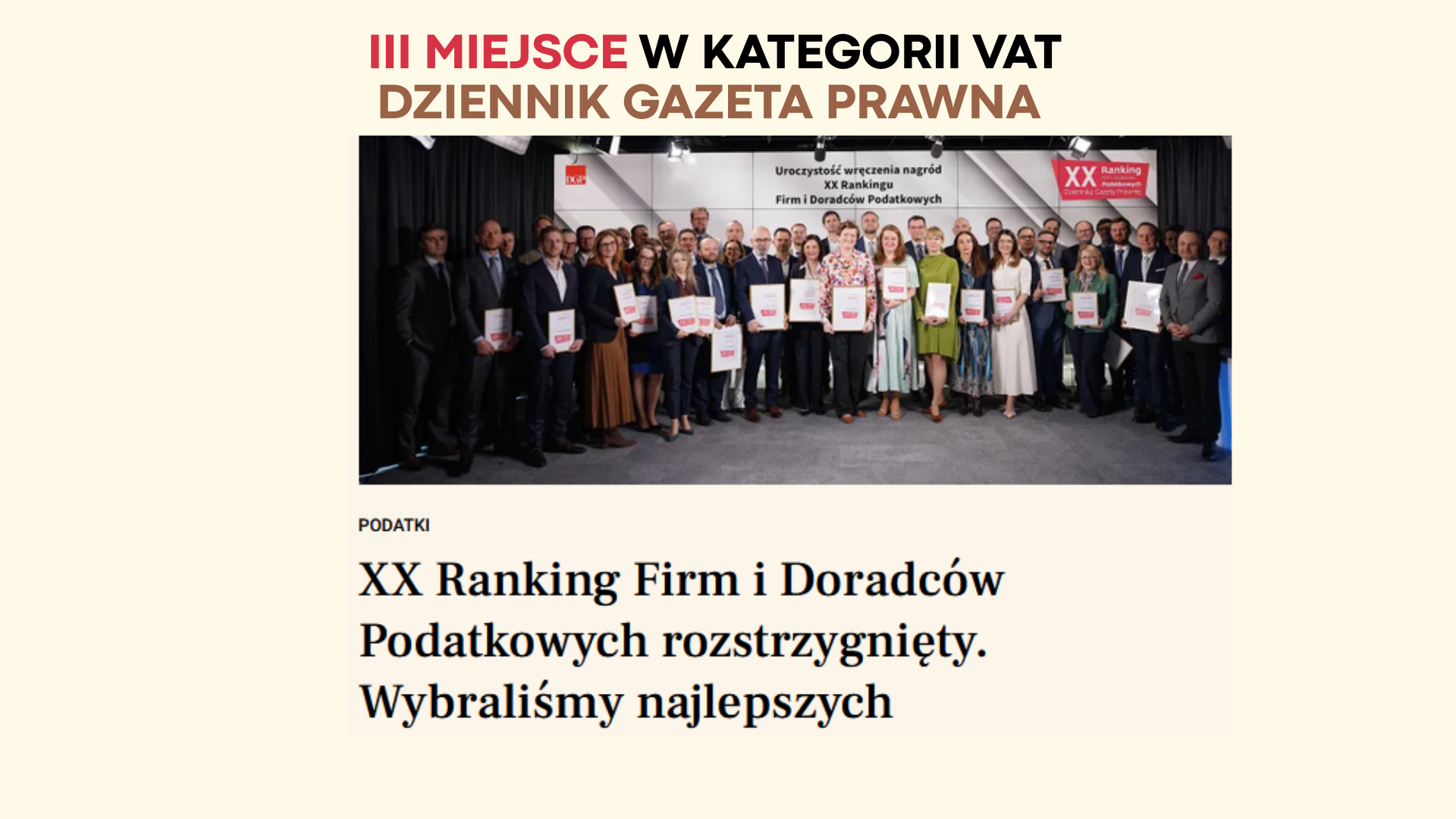 W Rankingu Najlepszych Doradców Podatkowych za 2025 rok, opublikowanym 13 kwietnia 2026 r. przez Dziennik Gazetę Prawną, Dorota Kosacka – doradca podatkowy oraz członek zarządu naszych spółek – zajęła III miejsce w kategorii VAT. To istotne wyróżnienie trafia do ekspertów, którzy nie tylko doskonale poruszają się w przepisach, ale również mogą pochwalić się udziałem w...Read More