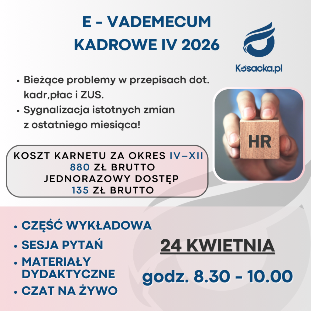 W tytule przelewu prosimy wpisać – E – Vademecum Kadrowe 2026