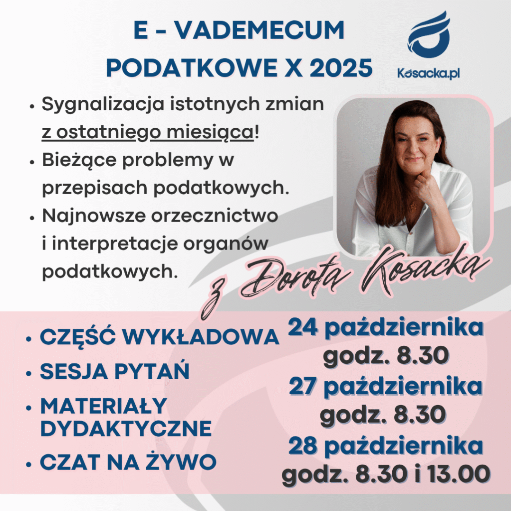 Prosimy o przesyłanie pytań na Vademecum (max. 3 pytania) do dnia 22 października do godz. 12.00 na adres: szkolenia@kosacka.pl